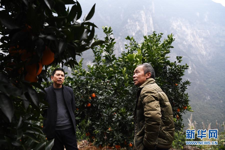 1月7日,毛相林(右二)和下莊村村民在背運剛采摘的柑橘。新華社記者王全超 攝