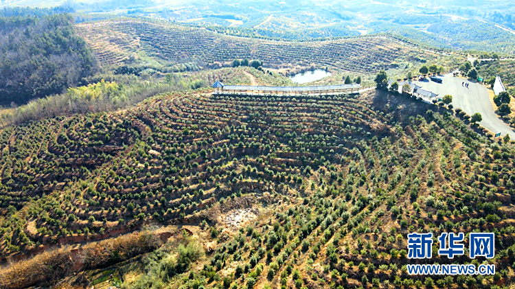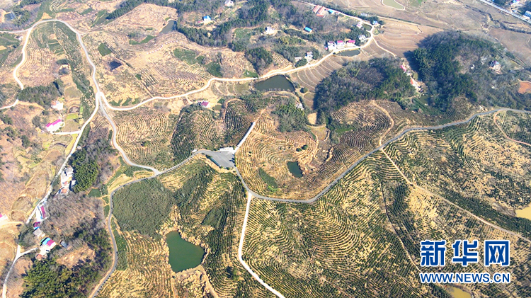 ????航拍六安市裕安區(qū)獨山鎮(zhèn)油茶產(chǎn)業(yè)脫貧示范基地。