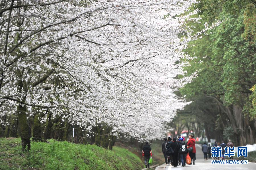 3月11日,游人在貴州省貴安新區(qū)的櫻花園內(nèi)賞花游玩。