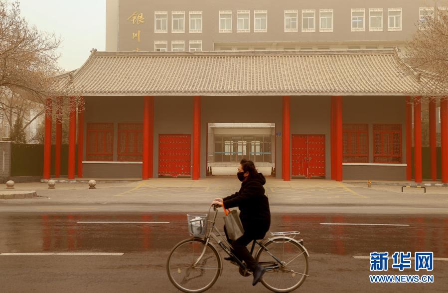 3月15日,在寧夏銀川市興慶區(qū)文化街,市民在沙塵中騎行。當日,我國北方多地出現沙塵天氣。新華社記者 楊植森 攝