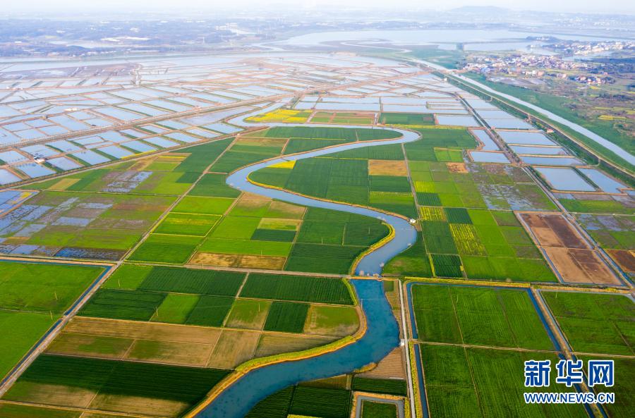 3月24日拍攝的江西省九江市彭澤縣芙蓉農(nóng)場的田園風(fēng)光(無人機照片)。