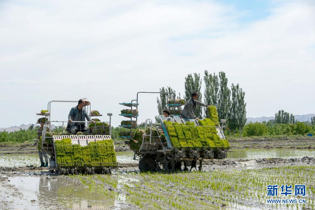 進(jìn)入5月,新疆溫宿縣的11萬余畝水稻進(jìn)入插秧期。稻田間,插秧機(jī)往來穿梭,一片繁忙景象。