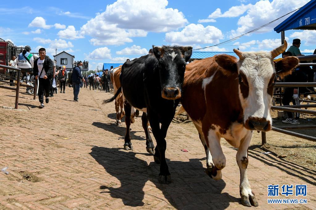 6月1日,賣(mài)家在開(kāi)魯牛市趕牛。
