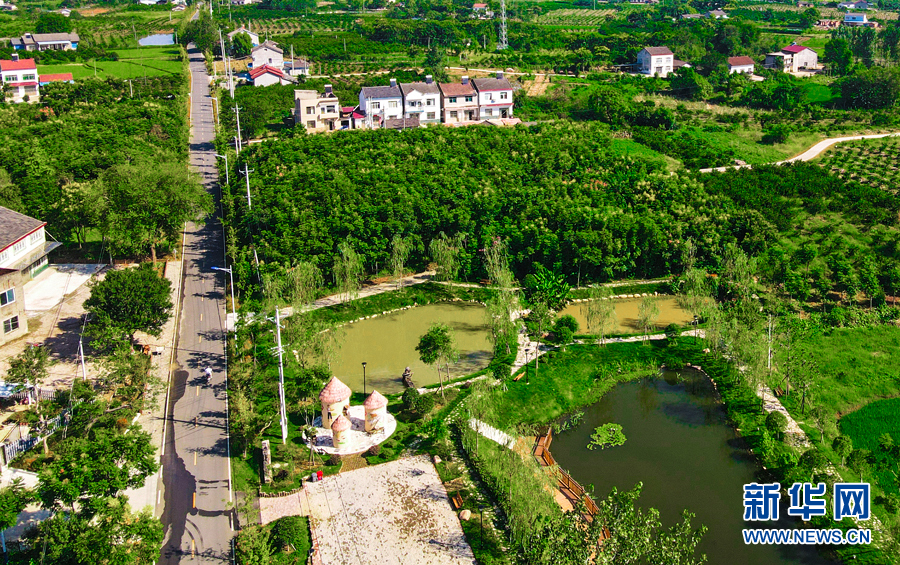 航拍湖北省枝江市董市鎮(zhèn)田園鄉(xiāng)村。新華網(wǎng)發(fā) 陳黃奎 攝