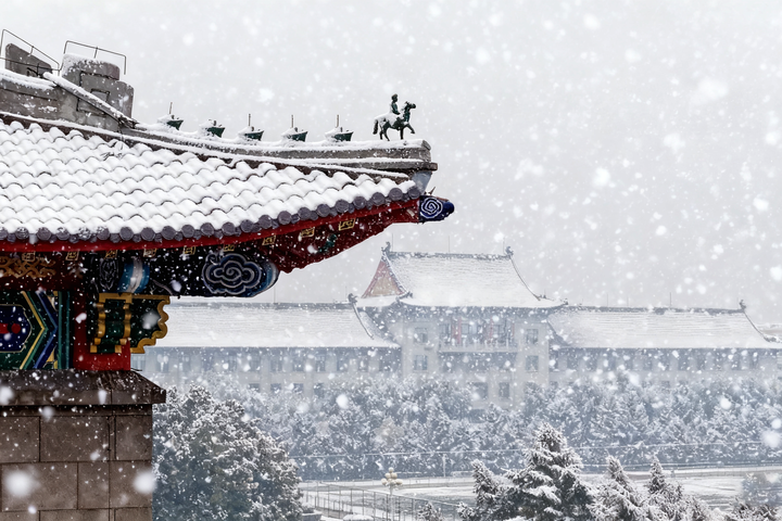 哈尔滨工程大学31号楼楼角飞檐雪景。(哈尔滨工程大学党委宣传部供图)