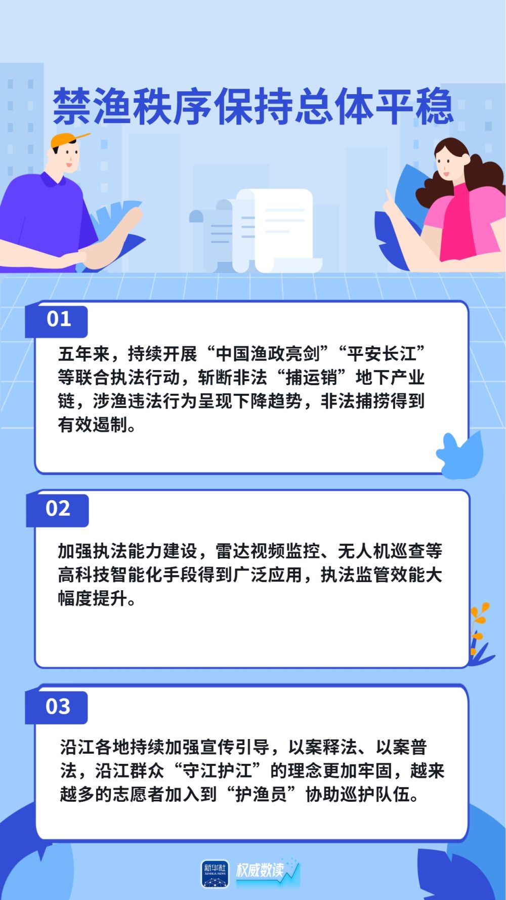 长江江豚数量恢复到1426头,中华鲟放流规模连续两年超过100万尾,长江鲟自然产卵试验取得成功......国新办30日发布会上,农业农村部介绍,长江十年禁渔全面启动实施五年来,取得了阶段性积极进展和显著成效,母亲河长江生物多样性恢复持续向好,逐步重现生机活力。跟随海报,一起来看看吧。