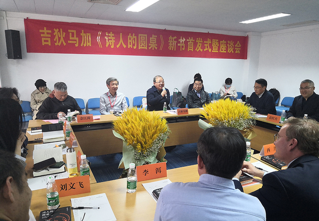 活動現場,鳳凰出版?zhèn)髅焦煞萦邢薰究偨浝碣芙瓭谥罗o中表示,從《詩人的圓桌》一書中可以看到吉狄馬加這位大地之子、群山之子對詩歌、故土、親人、自然、傳統(tǒng)、民族、文化,乃至整個人類命運的深情與關切。作為出版人,他很高興看見現在詩歌出版的繁榮讓越來越多的詩人、詩歌經由寫作、出版、傳播而被讀者認識、閱讀,并希冀在今后,鳳凰傳媒能夠繼續(xù)致力于原創(chuàng)詩歌田野的耕犁,更好地服務詩人與詩歌成果,在呈現詩歌當下面貌,打造詩歌出版重鎮(zhèn)的同時,讓詩歌充分發(fā)揮溝通人類心靈的功用,并且通過詩歌這一窗口,讓中國傾聽世界的聲音,也讓世界閱讀中國的故事,看見中國的觀點。