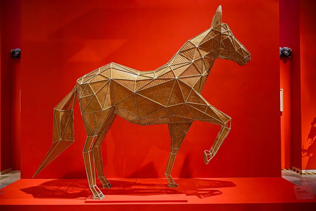 “骥跃鸿途”通过剪纸、年画、皮影、陶瓷、石雕、皮雕、竹编、泥塑等多种传统技艺类非遗作品的展示,让观众领略马的俊朗神姿及其美好的文化意蕴。