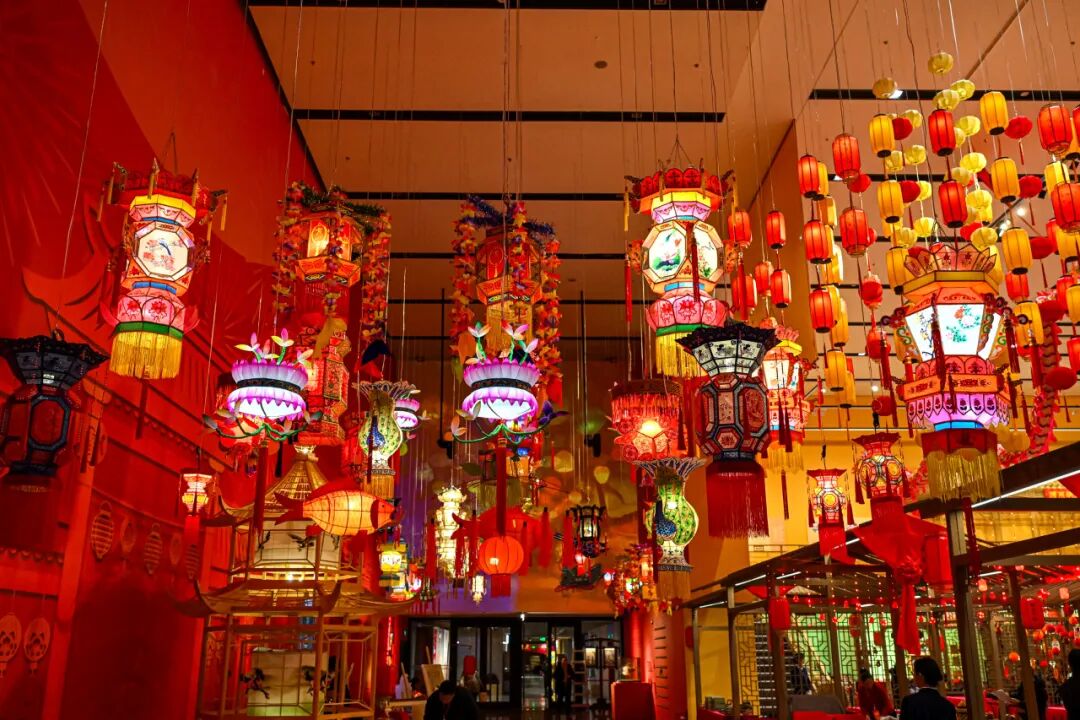 “光转春辉”选取近百件节日主题非遗灯彩作品,用造型丰富、制作精美的灯彩营造万家欢乐的节日氛围空间。