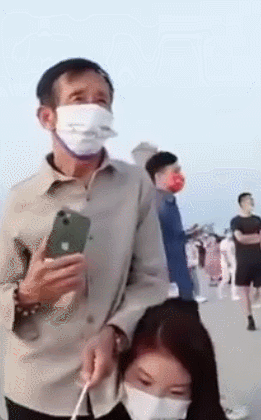 一个女孩扛着75岁父亲看升旗的一幕