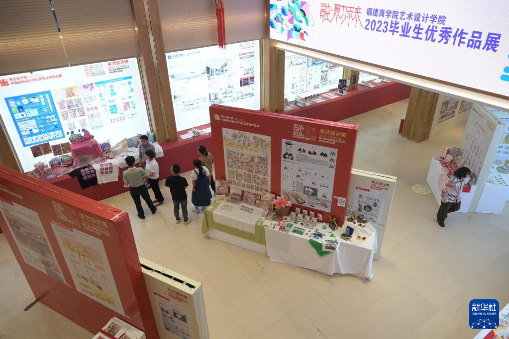 5月28日,观众在福建商学院艺术设计学院“2023毕业生优秀作品展”上参观。