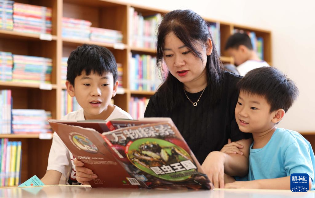 8月1日,学生和家长在贵州省铜仁市玉屏侗族自治县图书馆阅读。