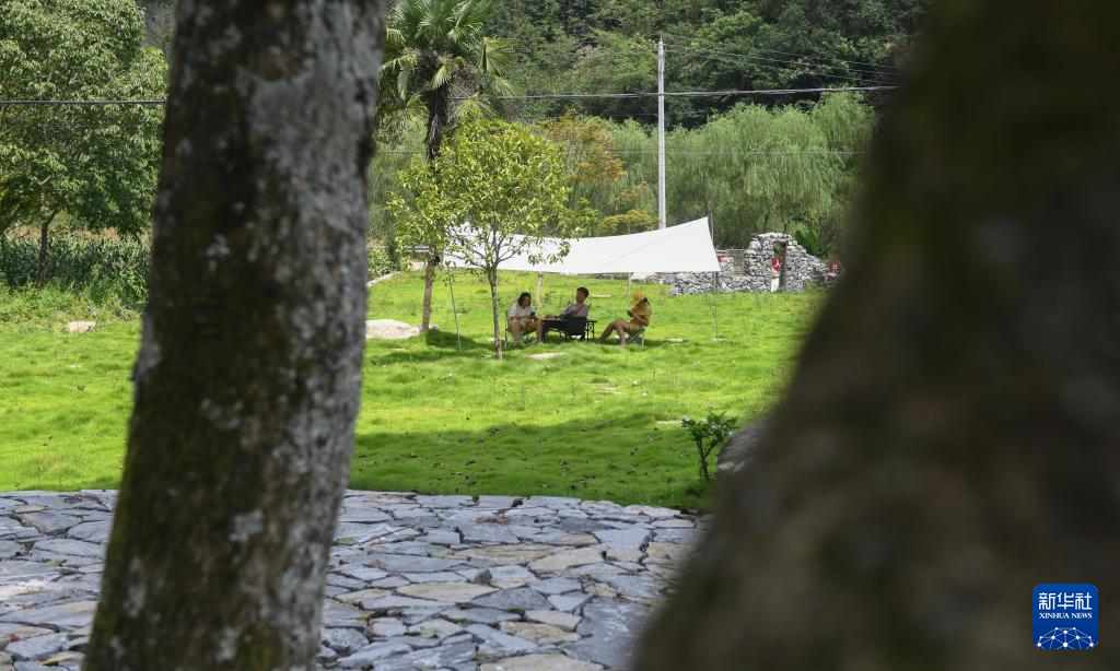 游客在下坪乡一处草坪休闲(8月17日摄)。