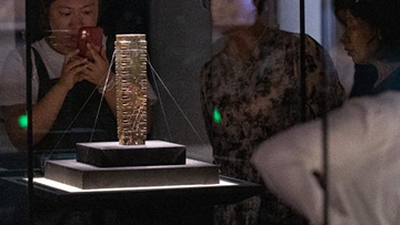 这是7月28日在重庆中国三峡博物馆举行的“玉出大江——长江流域史前玉器特展”上拍摄的玉琮。