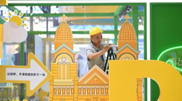 9月13日,在大运河奇妙夜中秋市集上展示的非遗产品。中秋市集上有北京“兔爷儿”、临清贡砖、洛阳大袖衫、苏州宋锦、宁波金银彩绣等大运河沿线的非物质文化遗产展示。