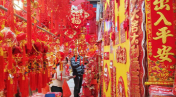 1月6日,游客在楚雄州南华县彝绣展馆挑选彝绣产品。