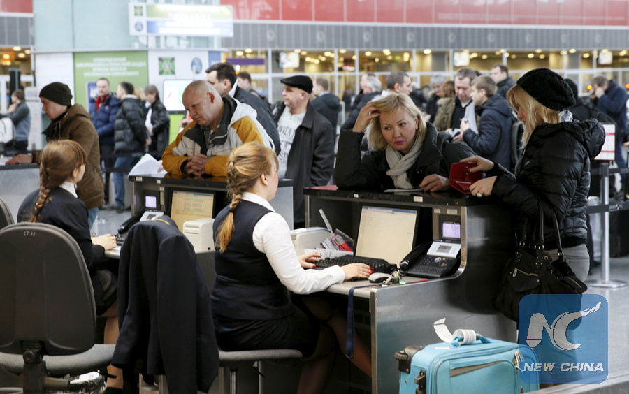 This file photo shows passengers getting registered at Kiev's main airport, Boryspil, in Ukraine, January 18, 2015. (REUTERS PHOTO)
