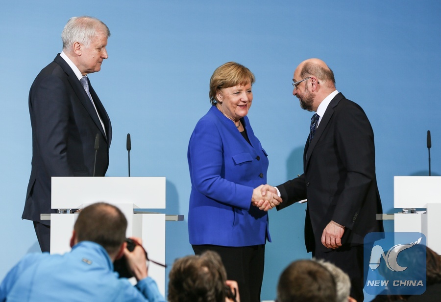 After the overnight talks, German Chancellor Angela Merkel's Christian Democratic Union (CDU), its Bavarian sister party Christian Social Union (CSU) and Martin Schulz-led Social Democratic Party (SPD), reached a 28-page agreement outlining the policies of the future new government on Friday morning.