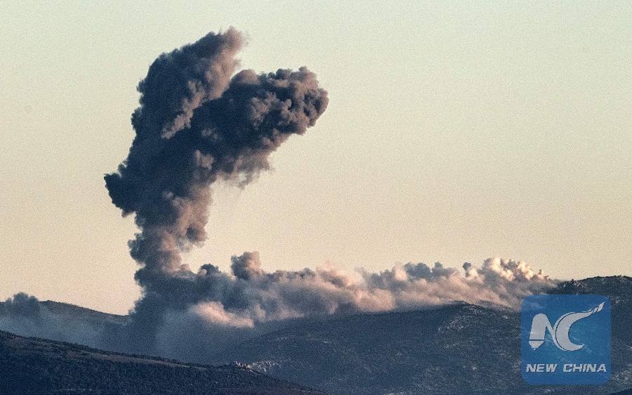 DAMASCUS, Jan. 20 (Xinhua) -- Three Turkish F-16 jets on Saturday carried out 11 airstrikes on Kurdish positions on the outskirts of Kurdish-held Afrin in northern Syria near the Turkish border, marking the official beginning of the Turkish military campaign against the Syrian Kurdish fighters in the region, pan-Arab al-Mayadeen TV reported.