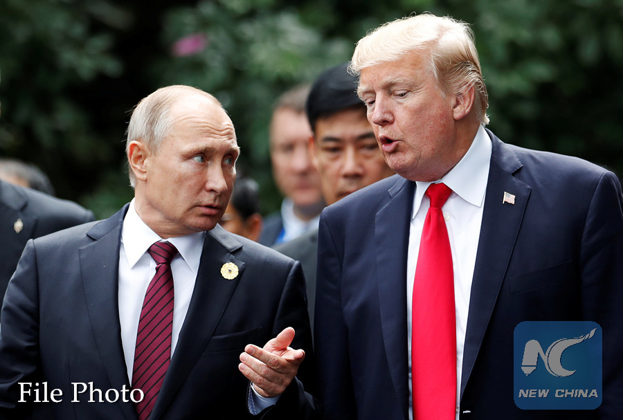 MOSCOW, Feb. 12 (Xinhua) -- Russian President Vladimir Putin had a telephone conversation with his U.S. counterpart Donald Trump and discussed the Middle East settlement, the Kremlin said Monday.