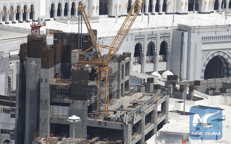 RIYADH, May 20 (Xinhua) -- Part of a crane fell in the Grand Mosque in Mecca in Saudi Arabia, with one worker slightly injured, Sabq local online news reported Sunday.