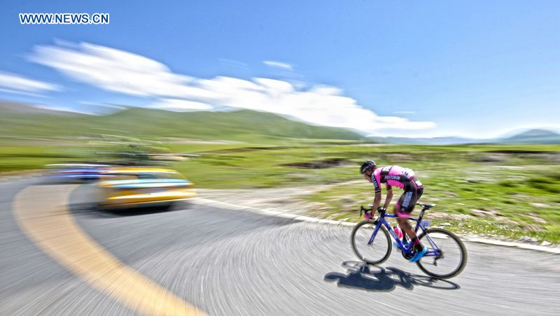 Cyclists compete in the fourth stage of the Tour of Qinghai Lake in northwest China's Qinghai Province, on July 25, 2018. (Xinhuanet Photo by Jia Haiyuan)