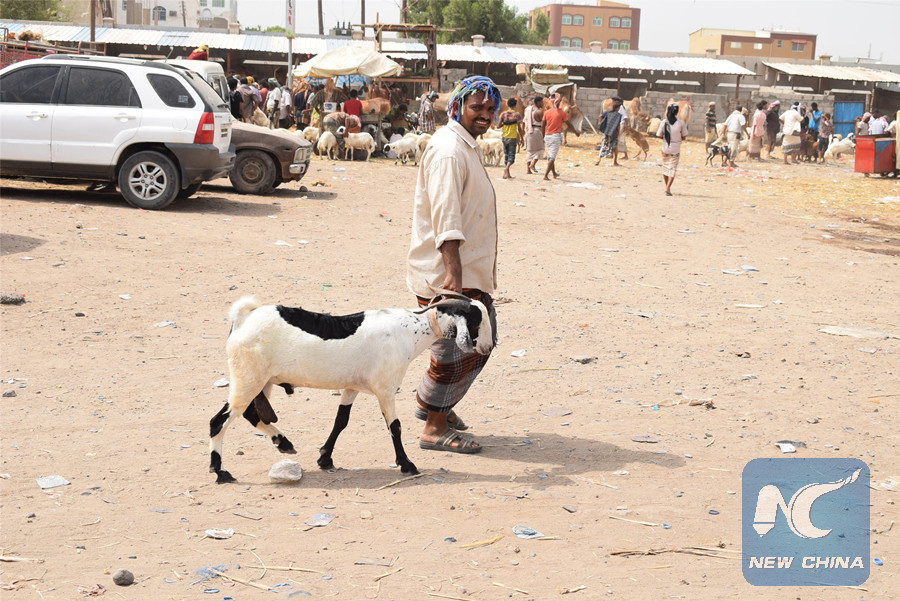 ADEN, Yemen, Aug. 17 (Xinhua) -- Cattle markets in the main cities of war-torn Yemen are recently thronged with customers eager to buy sacrificial animals for Eid al-Adha, the second of the two Islamic holidays celebrated worldwide.