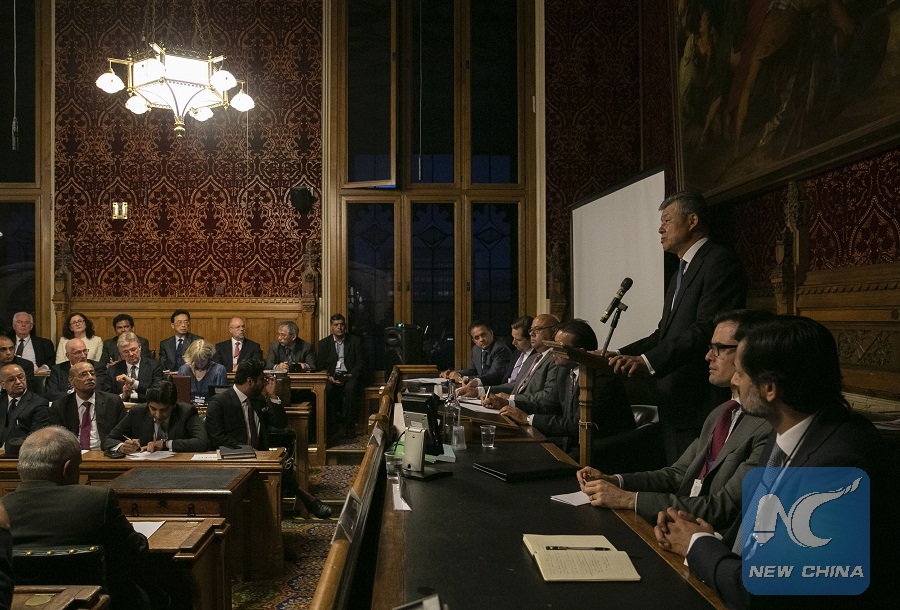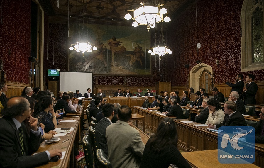 Photo taken on Sept. 10, 2018 shows the launching ceremony of the All-Party Parliamentary Group (APPG) for the Belt and Road Initiative (BRI) and China-Pakistan Economic Corridor (CPEC) held in London, Britain.(Xinhua/Han Yan)