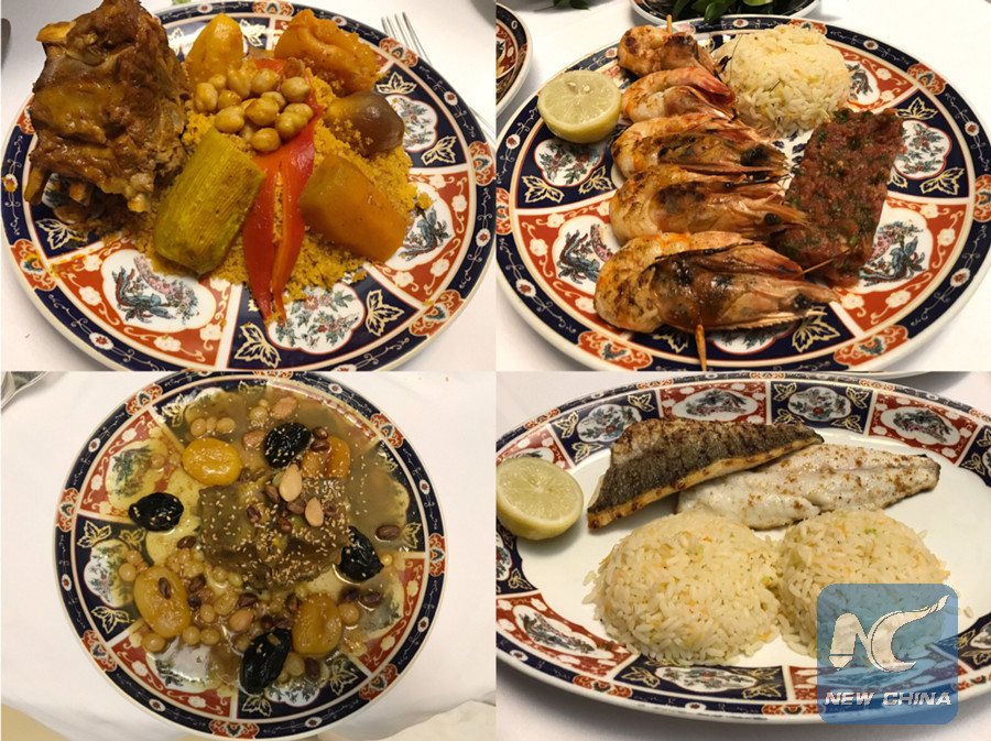 Various dishes with Mediterranean, Arabic and North African flavors are provided at a local restaurant in the Medina of Tunis, capital of Tunisia on Oct. 27. (Xinhua photo)
