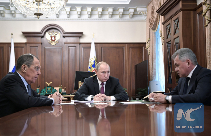 MOSCOW, Feb. 2 (Xinhua) -- Russian President Vladimir Putin on Saturday announced that Russia will suspend its participation in the Intermediate-Range Nuclear Forces (INF) Treaty in a mirror response to the United States' decision.