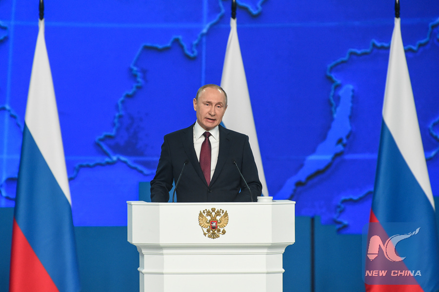 MOSCOW, Feb. 20 (Xinhua) -- Russian President Vladimir Putin said in his annual address to the parliament Wednesday that the government will boost expenditures on national projects concerning social development and beef up its military might to protect the country against external threat.