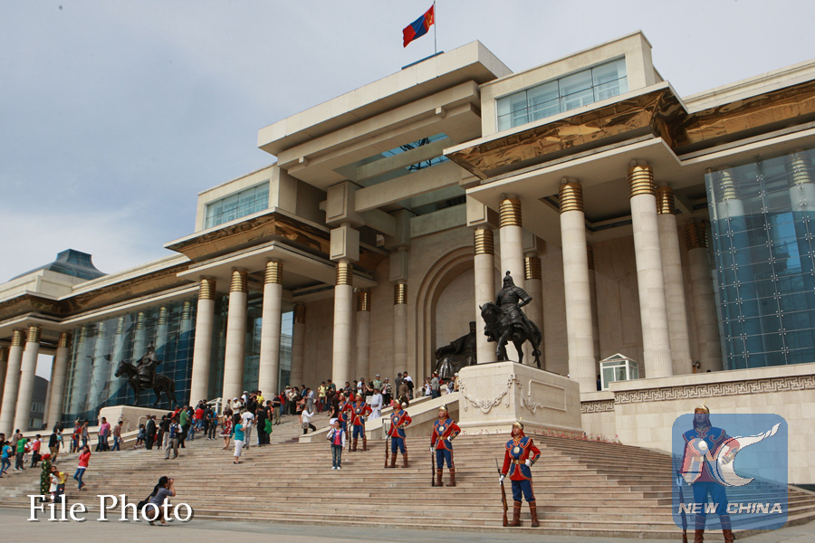 Tourists take photo outside the State Palace in Ulan Bator, Mongolia on Aug. 26, 2012. (Xinhua/Shi Yongchun)