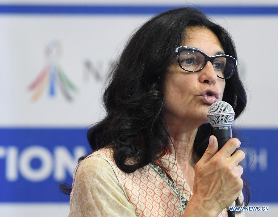 Lida Castelli, director of opening ceremony addresses a press conference for the 30th Summer Universiade in Naples, Italy, on July 1, 2019. The 30th Summer Universiade will kick off on July 3 in Naples. (Xinhua/Kong Hui)