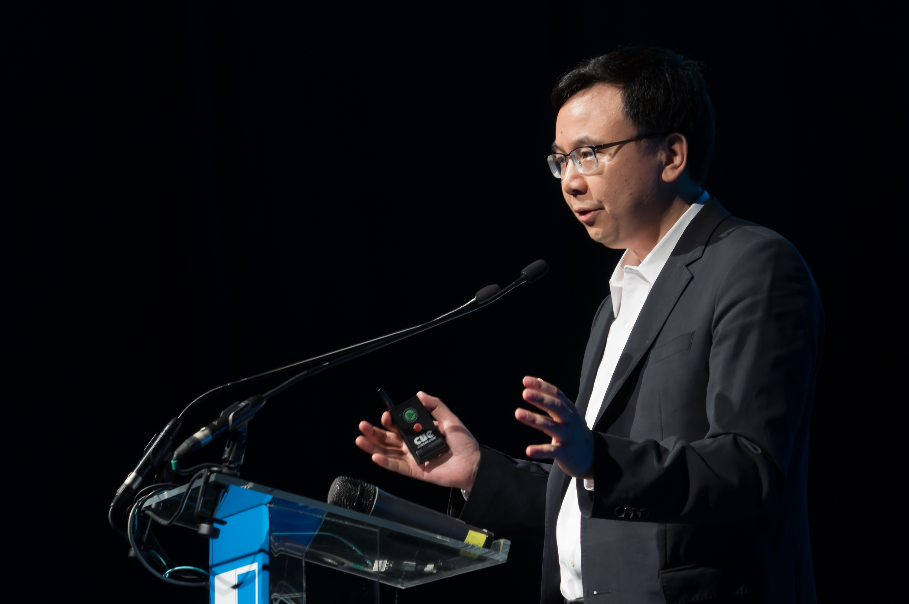 Yang Chaobin, president of 5G product line of China's telecoms company Huawei, speaks during the International Telecommunication Union (ITU) Telecom World 2019 held in Budapest, Hungary, Sept. 10, 2019.(Photo by Attila Volgyi/Xinhua)