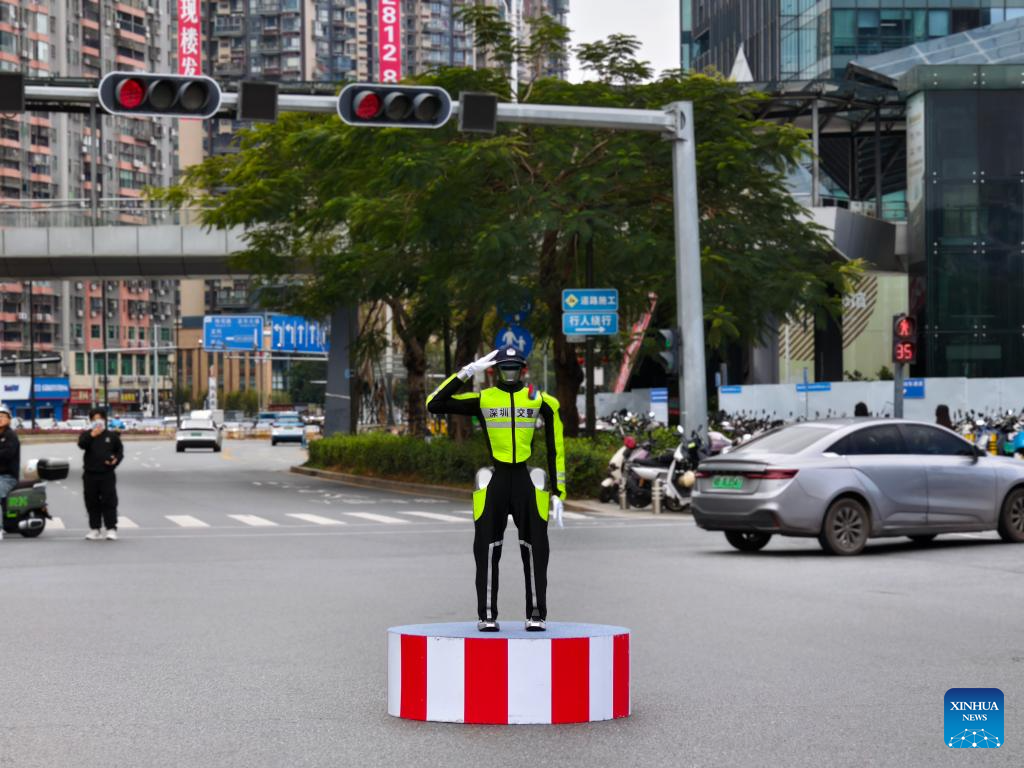SHENZHEN, March 13 (Xinhua) -- A futuristic new figure is now directing traffic in the tech hub of Shenzhen in south China's Guangdong Province.