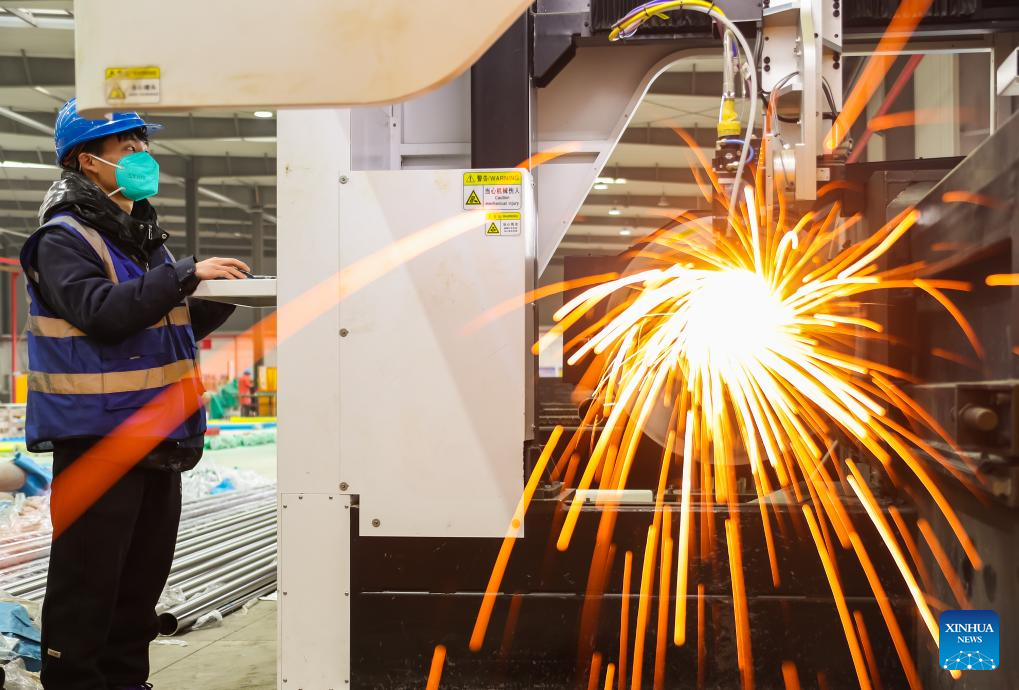 The pace was 1.1 percentage points faster than the level in December last year, according to the NBS. In February alone, the industrial output grew 0.83 percent from January. (Photo by Yang Min/Xinhua)