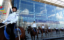 Mounted policewomen secure Summer Davos