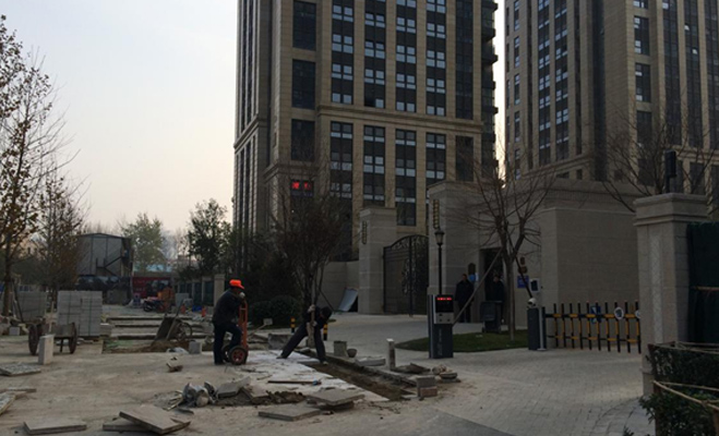 經(jīng)記者了解,首批入住時間是去年12月31日,二期預計2015年交付,目前仍在建設中。由于項目一二期建設上的時間差,小區(qū)整體環(huán)境與秩序較受影響。社區(qū)的主干道堆放有不少磚石與建筑材料,西區(qū)入口的道路仍未鋪設完成,由于工人來回搬運頻繁,小區(qū)對進出者的把關也變得比較松懈。