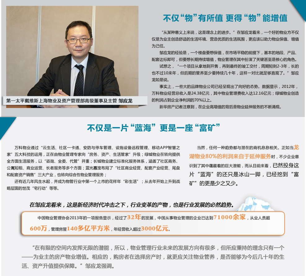 另一家龍頭房企保利地產(chǎn),則是把部隊(duì)大院的管理模式應(yīng)用到物業(yè)管理模式當(dāng)中?!霸谖飿I(yè)管理上,保利強(qiáng)調(diào)部隊(duì)大院的文化、和諧的文化,打造‘親情和院’的物業(yè)品牌?!?/span>[詳細(xì)]