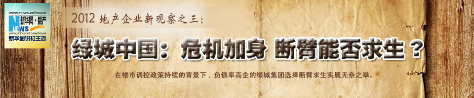 【綠城急否認(rèn)"破產(chǎn)門"】本輪調(diào)控中,綠城成為最被關(guān)注的高危企業(yè),從"信托調(diào)查門"到"退市門",再到"破產(chǎn)門",即便一些信息至今仍未被證實,但有一點可以肯定,此輪調(diào)整中,綠城資金緊張程度確為大型企業(yè)之首。網(wǎng)上突現(xiàn)綠城正申請破產(chǎn)傳聞,宋衛(wèi)平不得不在集團網(wǎng)站撰文澄清,告知"綠城離破產(chǎn)還有很遠的距離"。 …[詳細] |