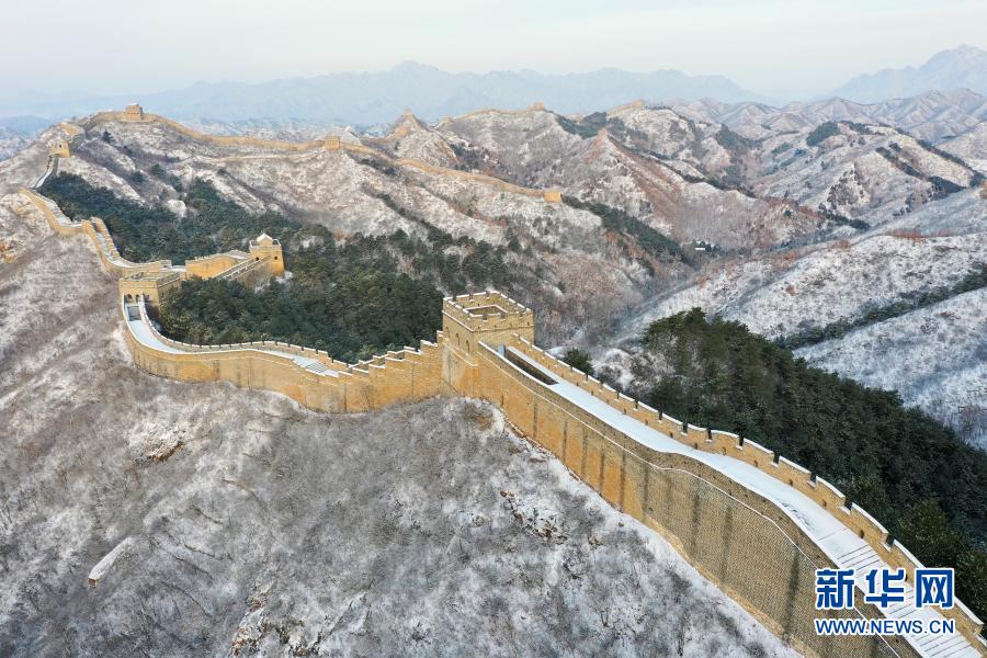 這是3月1日在河北承德境內(nèi)拍攝的金山嶺長(zhǎng)城雪景(無人機(jī)照片)。新華社發(fā)(周萬平 攝)