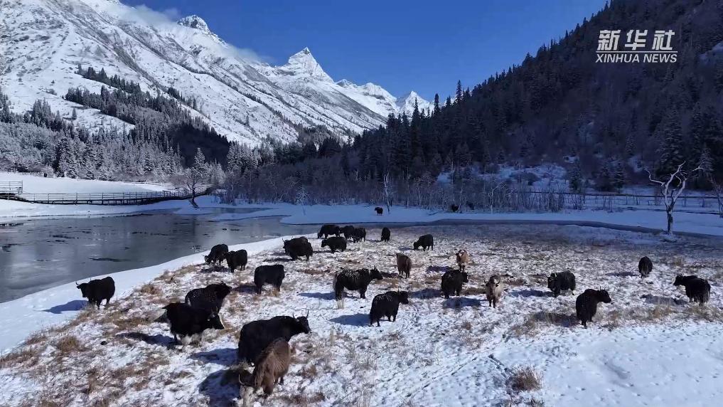 不同于深冬的凛冽,四姑娘山的春雪自带温柔滤镜,轻盈的雪花落在枝头,覆在高山草甸之上,映着澄澈蓝天,既有雪山的壮阔,又有春日的灵动。雾凇缀满琼枝,蓝冰映着雪峰,珠噶纳措的海子被白雪环绕,风过雪落,沙沙作响,仿佛在诉说着山川的浪漫私语。