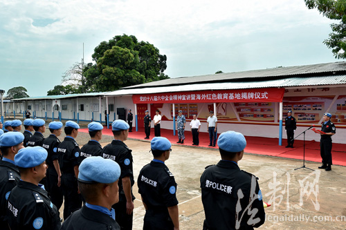 ????揭牌儀式上,中國第四支駐利比里亞維和警察防暴隊(duì)政委徐曉偉宣讀了公安部邊防管理局黨委書記、政委牟玉昌專門發(fā)來的賀電,向防暴隊(duì)成立海外紅色教育基地表示熱烈祝賀,充分肯定了防暴隊(duì)取得的成績,并要求武裝頭腦、指導(dǎo)實(shí)踐、推動工作,牢固樹立“四個(gè)意識”,嚴(yán)肅黨內(nèi)政治生活,以更加出色的成績和過硬作風(fēng)為全國邊防官兵作好表率。
