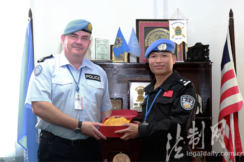 ????藍隊長向總警監(jiān)匯報了中國防暴隊編成、物資裝備、甄選考核以及抵達任務區(qū)后執(zhí)行維和勤務等情況,介紹了中國防暴隊在部隊正規(guī)化建設、治安形勢研判、后勤綜合保障等方面經驗做法,并表示將恪守聯(lián)合國核心價值,堅決服從聯(lián)利團指揮鏈條,嚴格落實防暴辦下達的各項指令任務,繼續(xù)保持和發(fā)揚中國維和警隊紀律嚴明、敢打硬仗的優(yōu)良傳統(tǒng)。