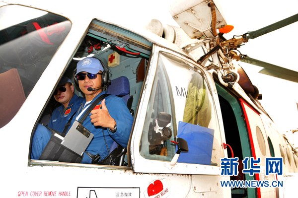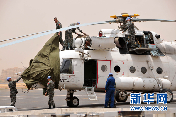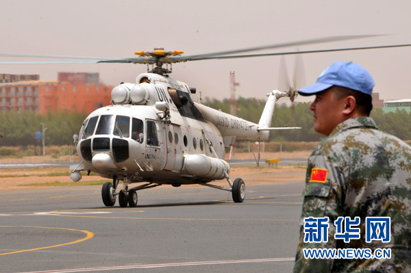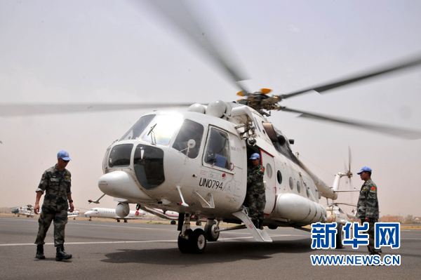 ?。吩拢常比?,中國首批維和直升機(jī)分隊在蘇丹喀土穆國際機(jī)場成功首飛。