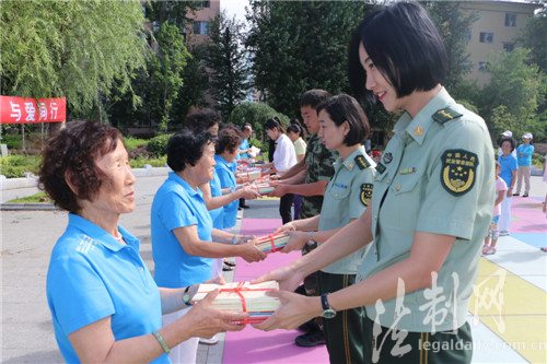 圖為邊檢站官兵為社區(qū)老黨員送“兩學一做”系列圖書