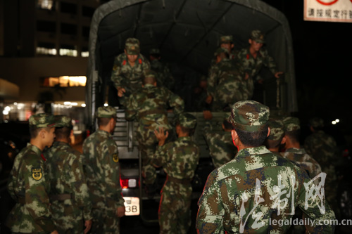 珠海公安邊防支隊官兵登車前往受災(zāi)嚴(yán)重區(qū)域搶險救災(zāi)
