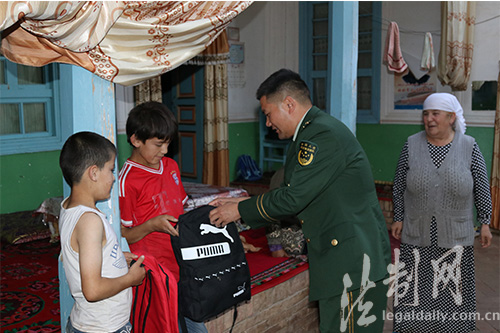 圖為臨近開學(xué),教導(dǎo)員楊強還為阿米古麗小孩帶去了學(xué)習(xí)用品