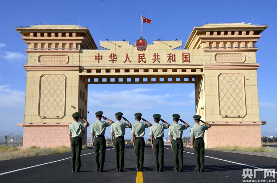 都拉塔邊檢站退伍老兵向國(guó)門(mén)敬禮告別(董紅太攝)