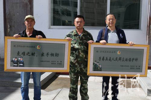 ????9月5日,一面寫有“子弟兵是人民群眾的保護(hù)神”的牌匾送到西藏邊防總隊阿里邊防支隊,4名新疆籍游客激動地向這個支隊黨委感謝所屬單位多瑪邊防派出所官兵危難關(guān)頭救助之恩。